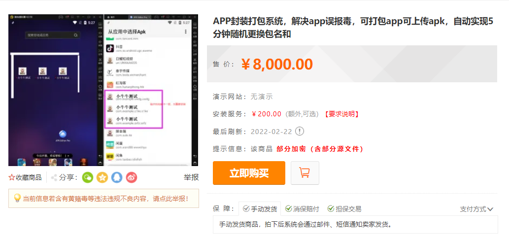 2022修复版解决app误报毒/可打包app可上传apk/自动实现5分钟随机更换包名和签名